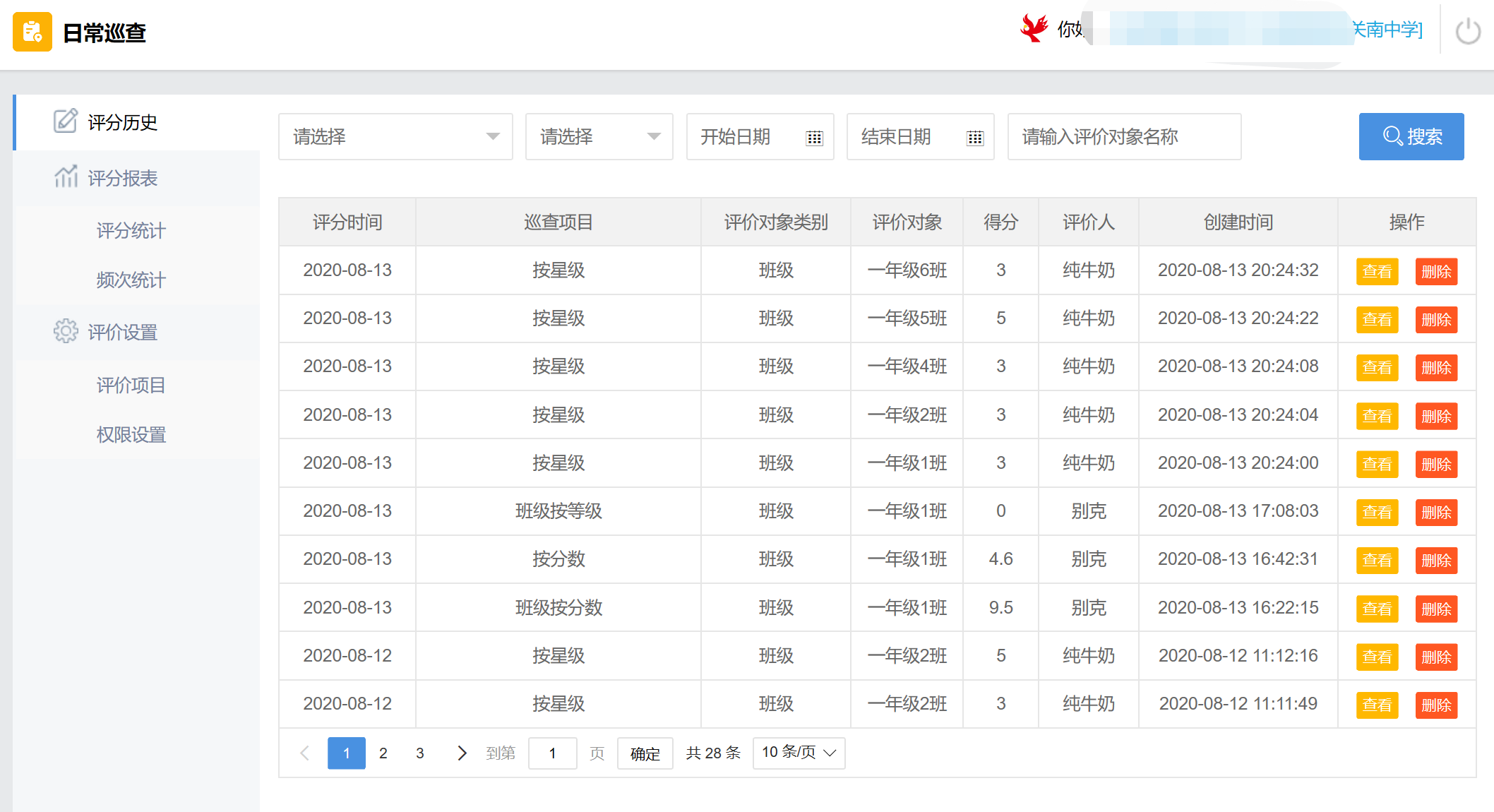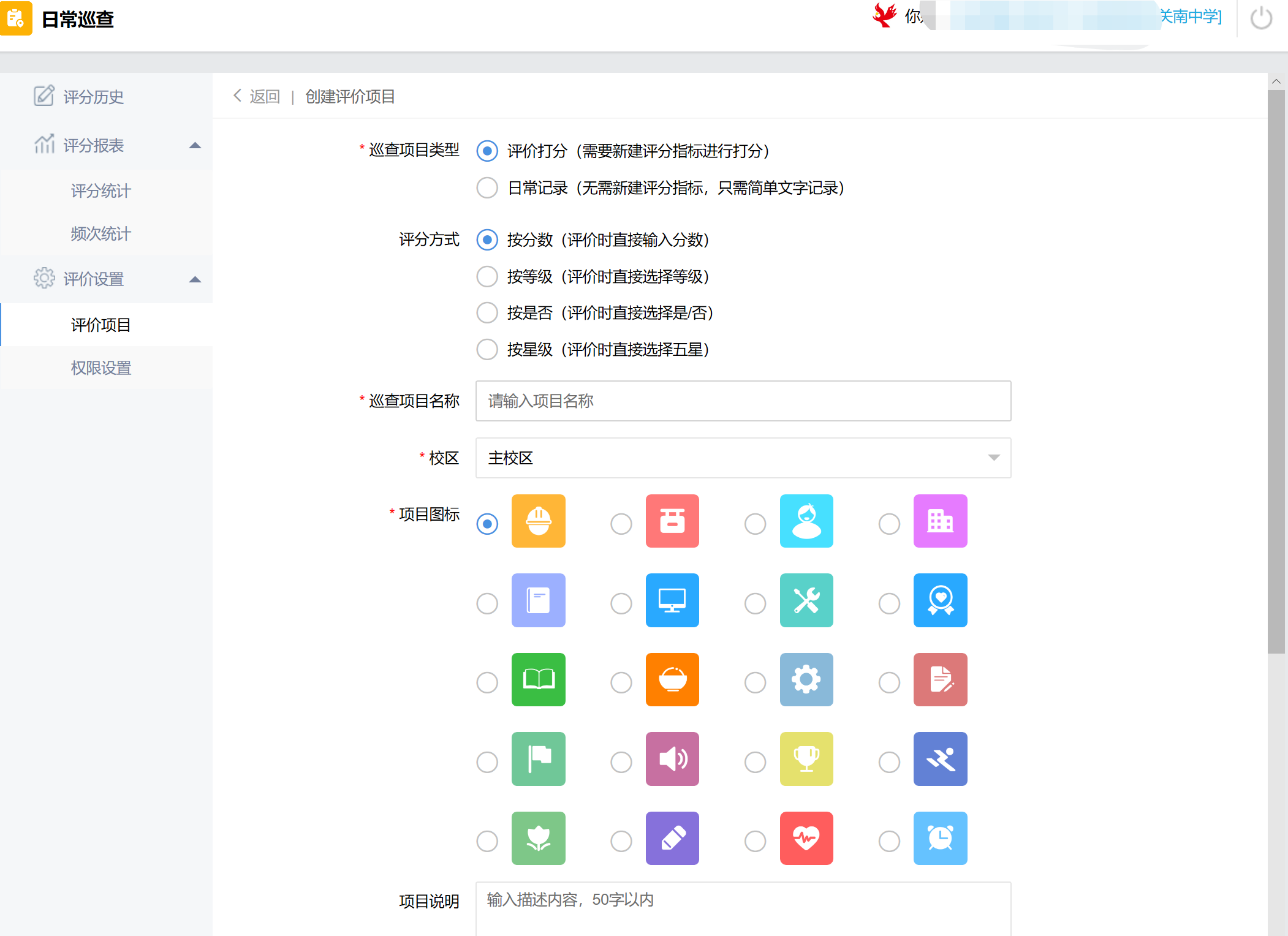 日常巡查是一款支持学校在各种巡查场景进行评价打分的应用。日常巡查支持新建多种日常评价打分场景(比如德育检查、课堂巡检、中自习等等),对应每个场景可自定义多个评价指标,来对班级、宿舍、小组、老师进行全方位的实时评价,并且我们的不同场景、指标和时间都可以设置不同的巡查值班人员。
